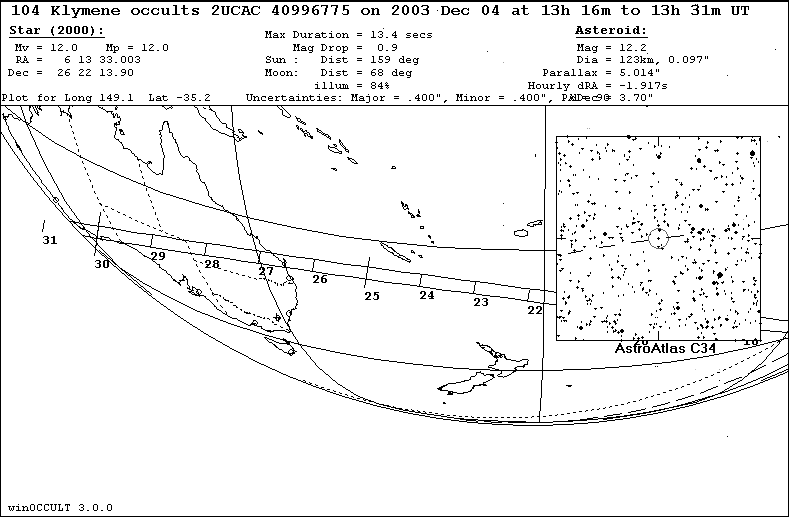 On 2003 Dec 04 UT, the 123 km diameter asteroid (104) Klymene will occult a 12.0 mag star in the constellation Gemini for observers along a path across Australia.